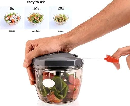 New jumbo Handy Chopper Vegetable & Fruit Cutter, Special Cutter for Onion Chopper, with 5 Stainless Steel Blade and Pull Cord Technology 900ML. ( Grey)(Pack of - 1)